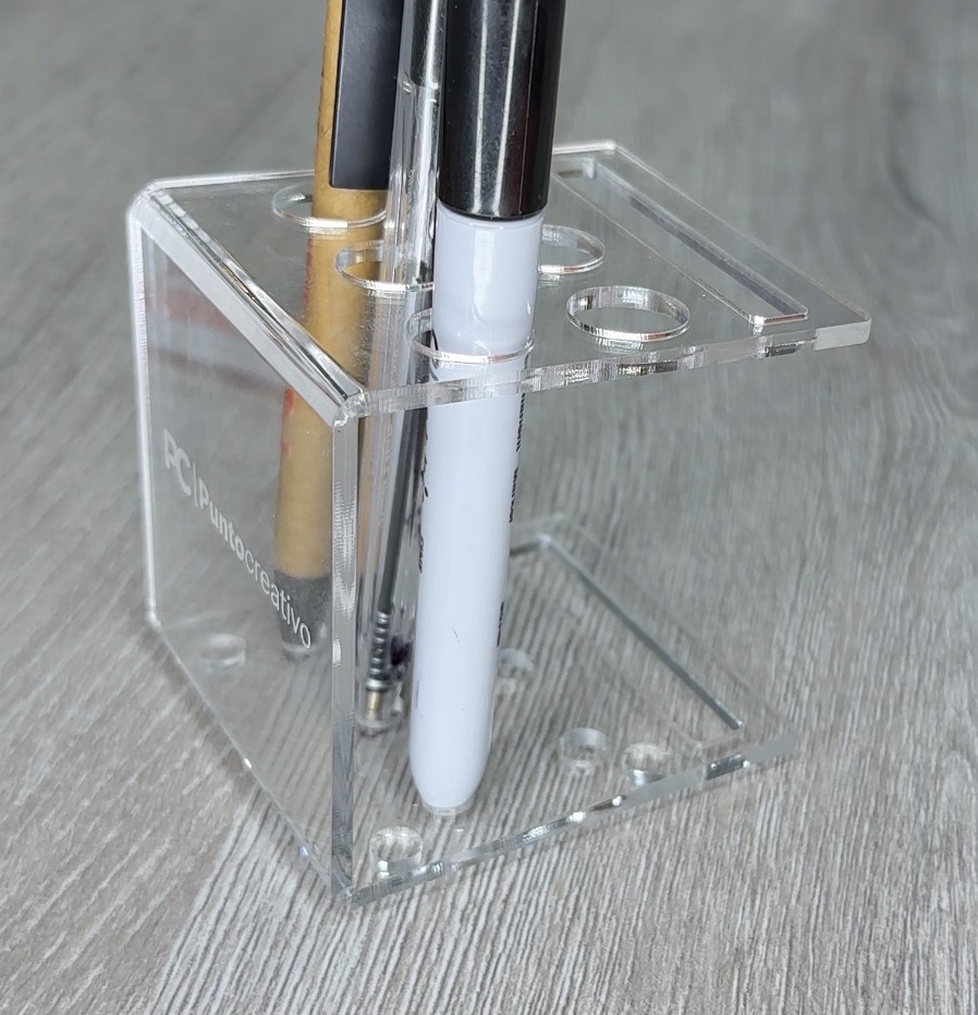 Cuenta con medidas de 7 cm de alto, 7 cm de ancho y 7 cm de profundidad, lo que lo convierte en una pieza compacta pero funcional. Dispone de capacidad para 6 bolígrafos, con orificios de 1 cm de diámetro, ideales para mantener tus herramientas de escritura organizadas y siempre al alcance.